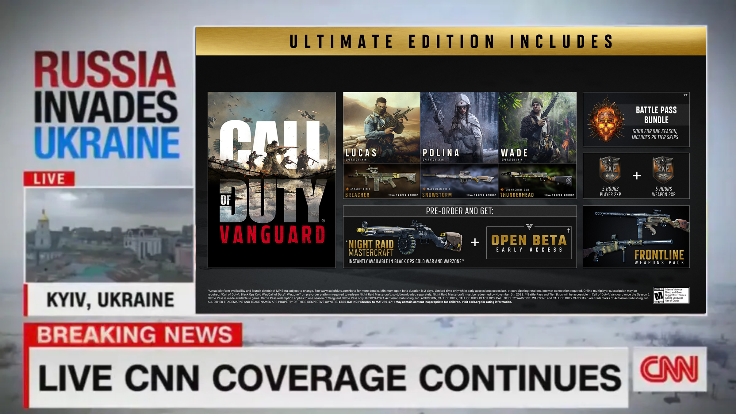 "It was just a crazy little idea we had, you know. Putin, Epstein and I were just chilling, having some drinks, Bill Clinton popped the question to me on what we were thinking for the next Call of Duty title. We decided to sexually harass some of the Activision Blizzard employees first. We're untouchable. If anyone complained, I could have them killed. You know. Anyway, we decided to stage a war, like an actual war, and then make a Call of Duty game about it. Nuts, right? Never been done before." Bobby Kotick explained, laughing with glee at the footage of Russian and Ukrainian soldiers locked in bloody, brutal combat.